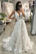 Dlouhá Přikrýt Zip nahoru Hluboký výstřih do V Svatební šatyKrásné!! Jsem s šaty moc spokojená, jsou perfektní a kvalita je úžasná.