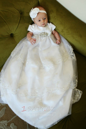 Formální Šperk Girlanda Krátký rukáv Podzim T-shirt rukáv Křest šaty #C2200029