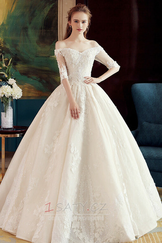 Délka podlahy Tyl A-Čára Zašněrovat boty Rosný rameno Svatební šaty #C2206044