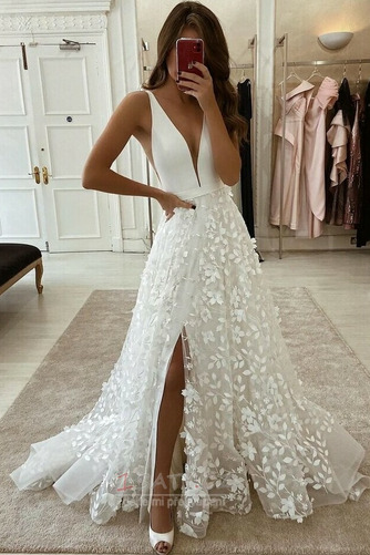 Dlouhý Rozdělit přední Elegantní Zip nahoru Střední Svatební šaty