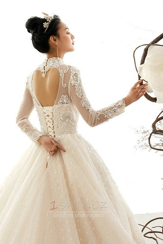 Iluze Vysoká krk Dlouhý rukáv Krajkou Overlay A-Čára Svatební šaty #C2205957