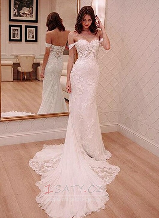 Domů Svatební šaty Svatební sukně TěsnéSexy Zamést vlak Nášivky Rosný rameno Bezzadu Těsné Svatební šaty