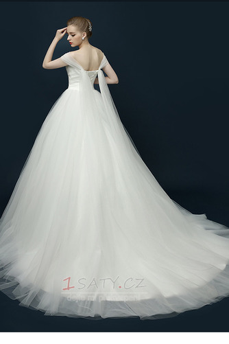 Tyl Střední Pláž Víčko Přírodní pas Krátké rukávy Svatební šatyTyl Střední Pláž Víčko Přírodní pas Krátké rukávy Svatební šaty