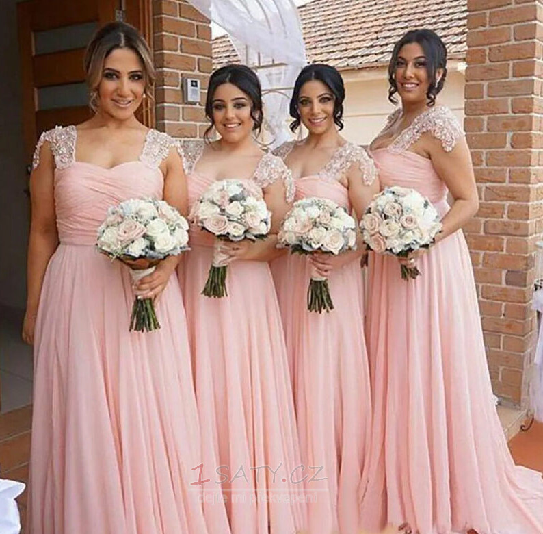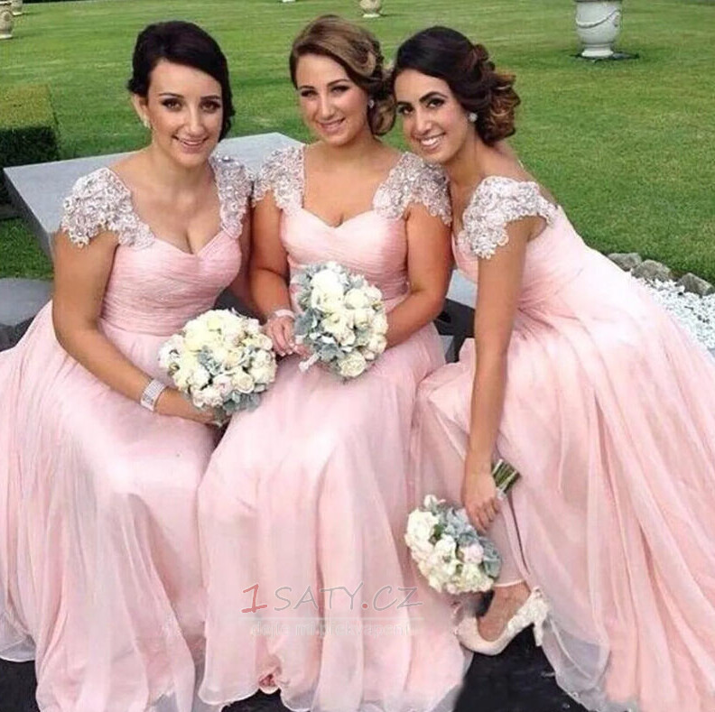 Šifón Elegantní Jaro Aplikací Střední Víčko Krátký rukáv Družička Šaty