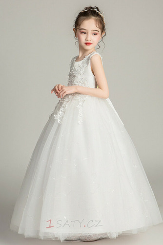 Domů Květinové dívky šaty Květinářka Šaty TylA-Čára Aplikací Dlouhý Drahokam Přirozeného pasu Květinové dívky šaty