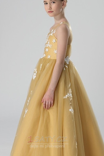 Domů Květinové dívky šaty Květinové dívky sukně TylPřírodní pas Krajkou Overlay Drahokam Délka podlahy Květinové dívky šaty