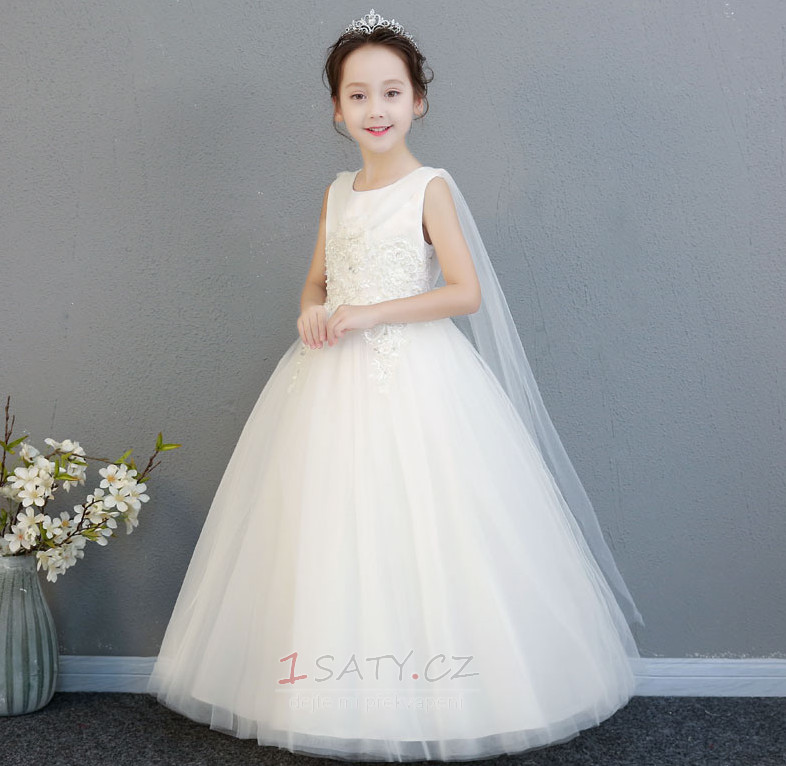 Domů Květinové dívky šaty Květinové dívky šaty TylTyl Bez rukávů Délka kotník Šperk Přírodní pas Květ dívka šaty