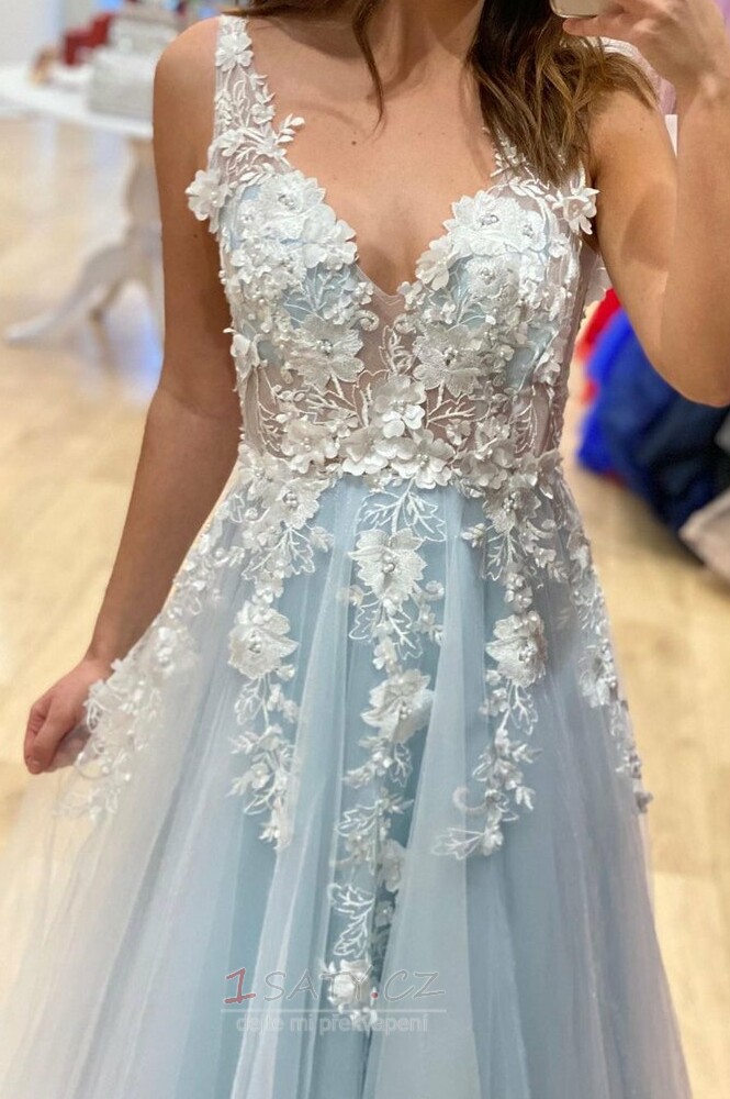 Nášivky Zip Délka podlahy Bez rukávů Tyl V-krk A-Čára Večerní šaty - Strana 1 Nášivky Zip Délka podlahy Bez rukávů Tyl V-krk A-Čára Večerní šaty - Strana 2