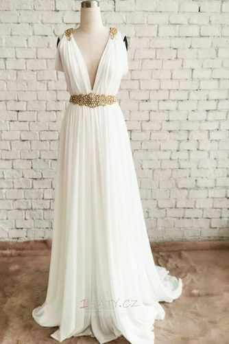 Sexy Přírodní pas Míč Dlouho Bez rukávů V-krk Korálkový pás Večerní šaty