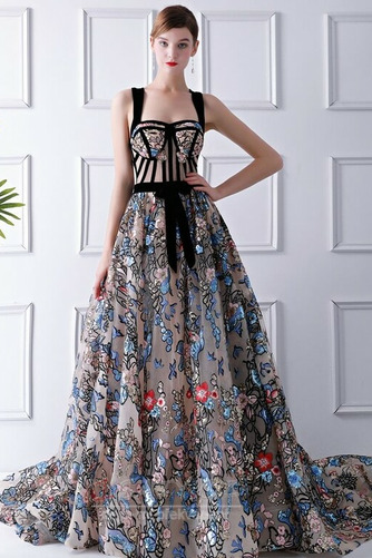Domů Večerní šaty Večerní šaty DlouhýŠiroké popruhy A-Čára Bez rukávů Podzim Zdobený živůtek Společenské šaty