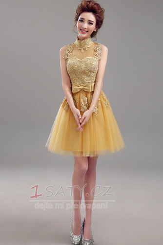 Domů Promové šatyLéto Zip nahoru Střední A-Čára Krajka Vysoká krk Promové šaty