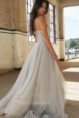 Tyl Lištování Šik Léto Střední A-Čára Špagety popruhy Promové šaty #C2206410