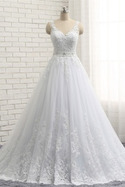 Klasický Nášivky Zip nahoru Krajka Přírodní pas Svatební šaty